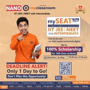 Only 1 DAY LEFT for the mySEAT Plus 2026-27 Scholarship Test!