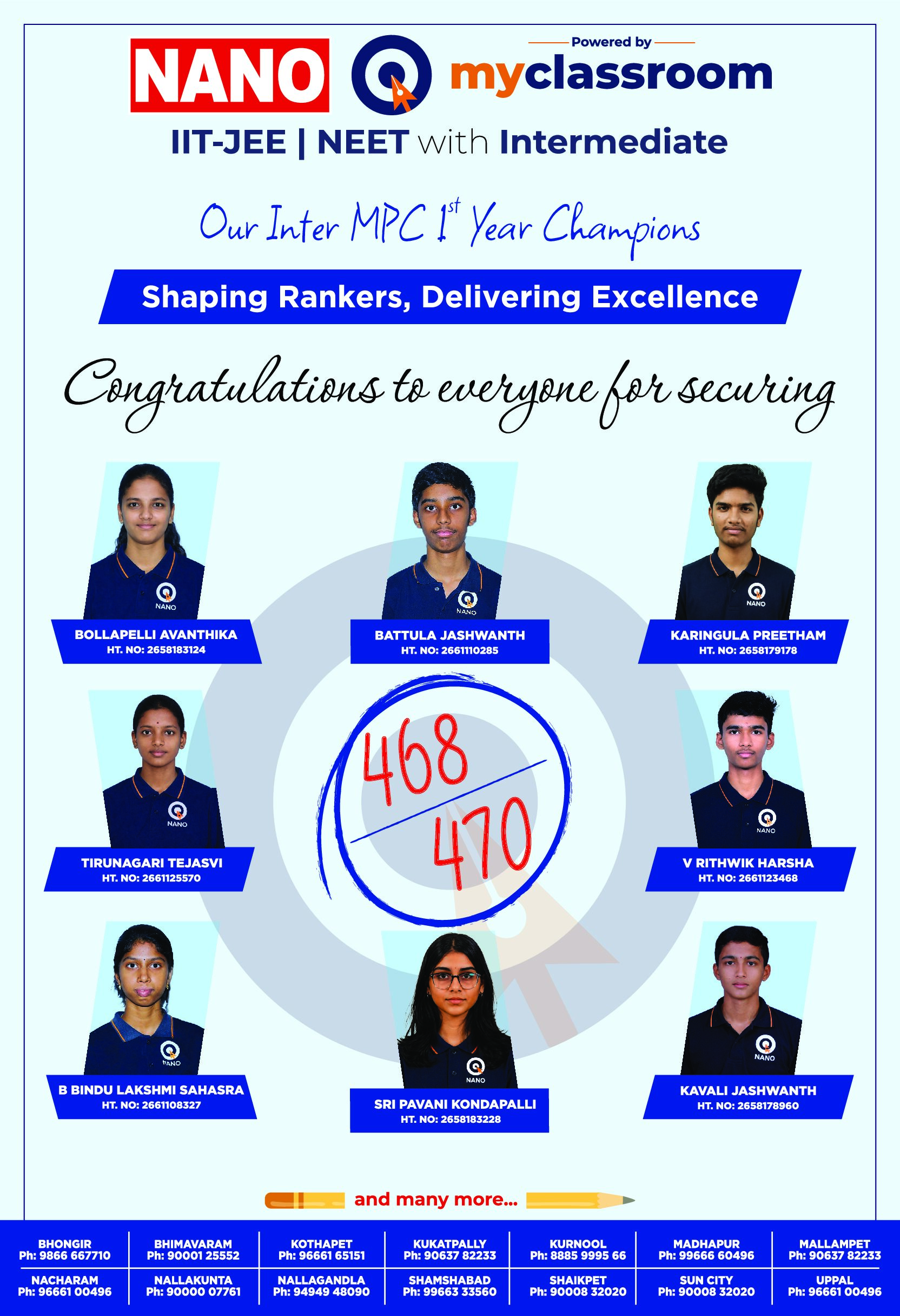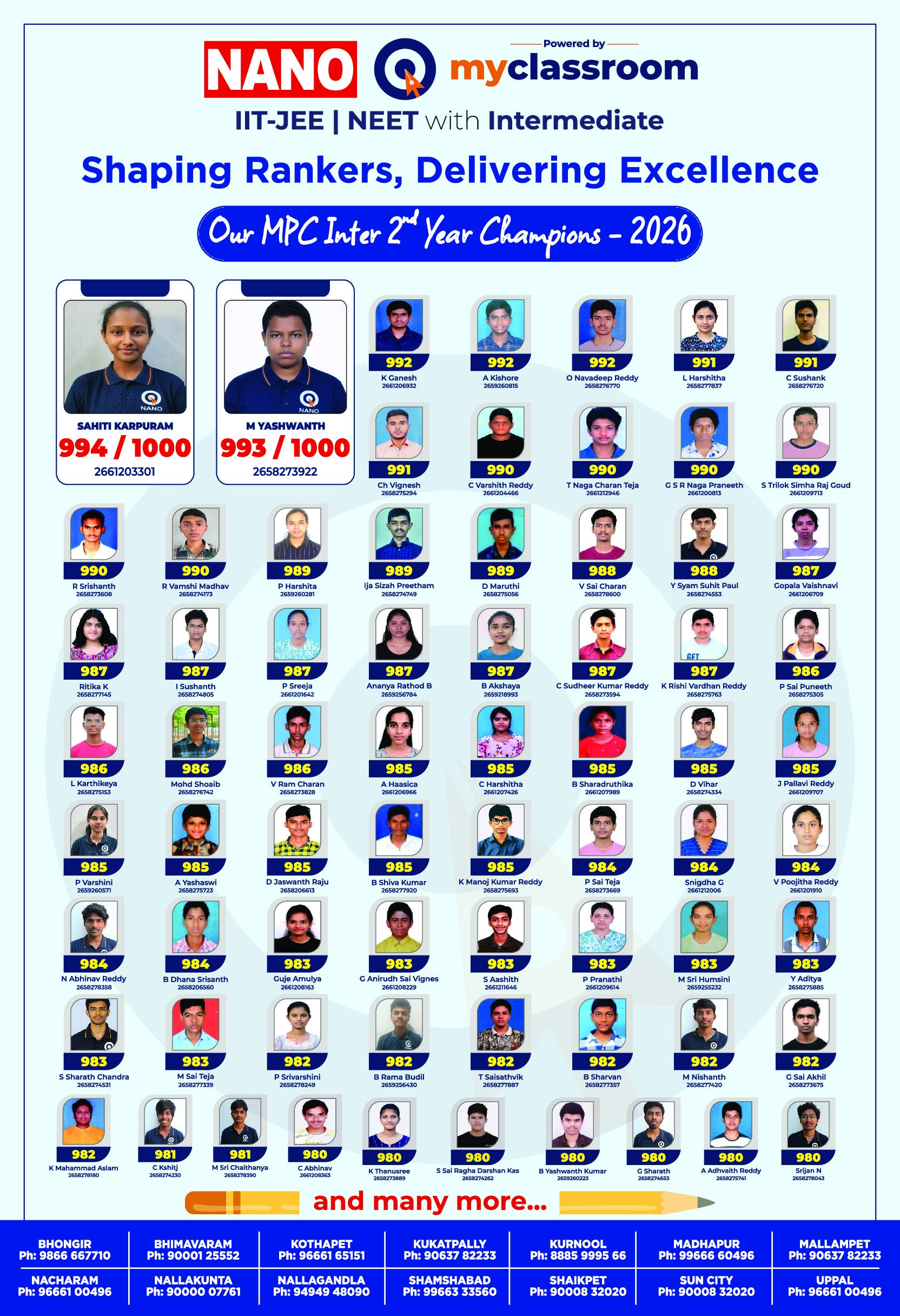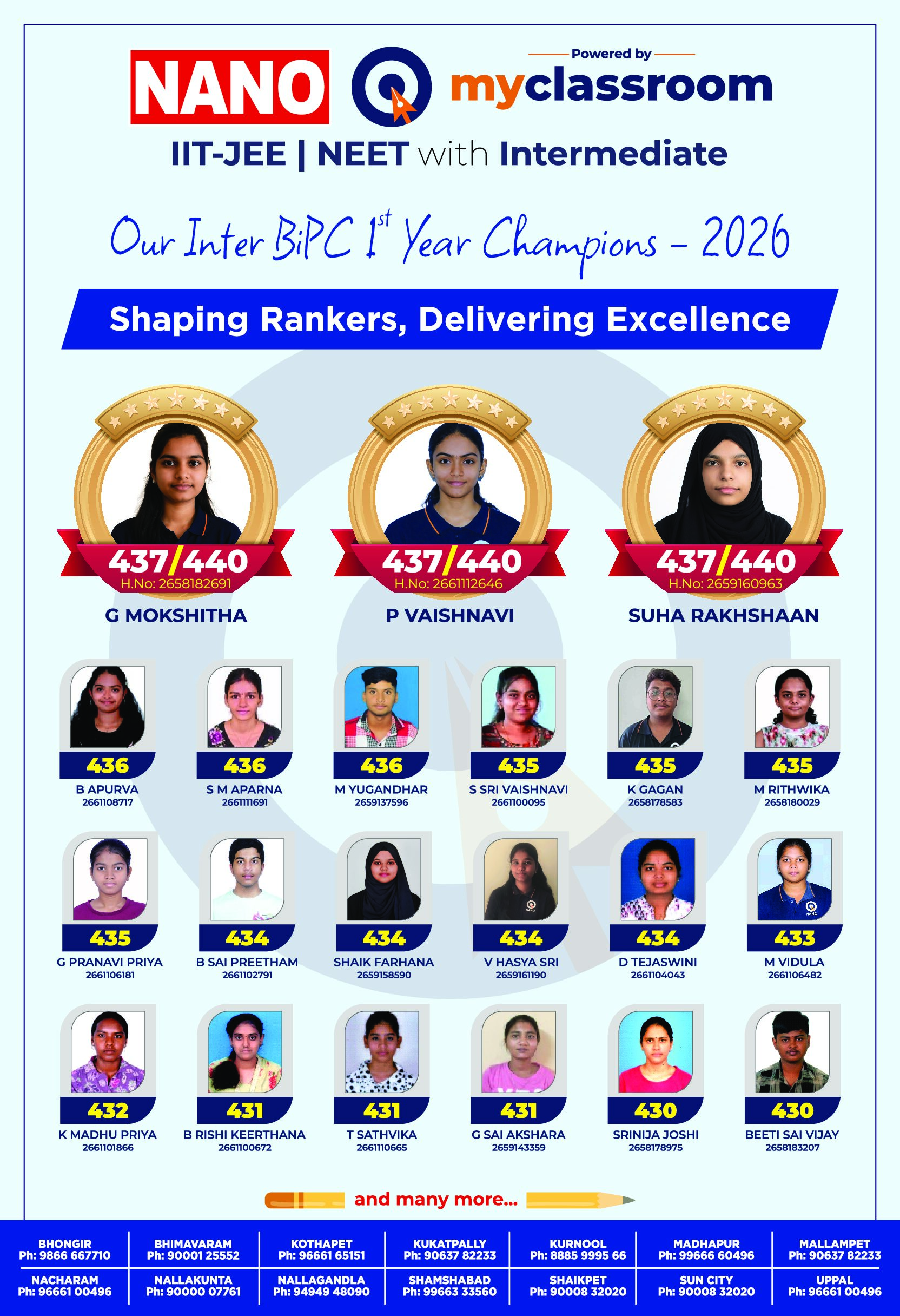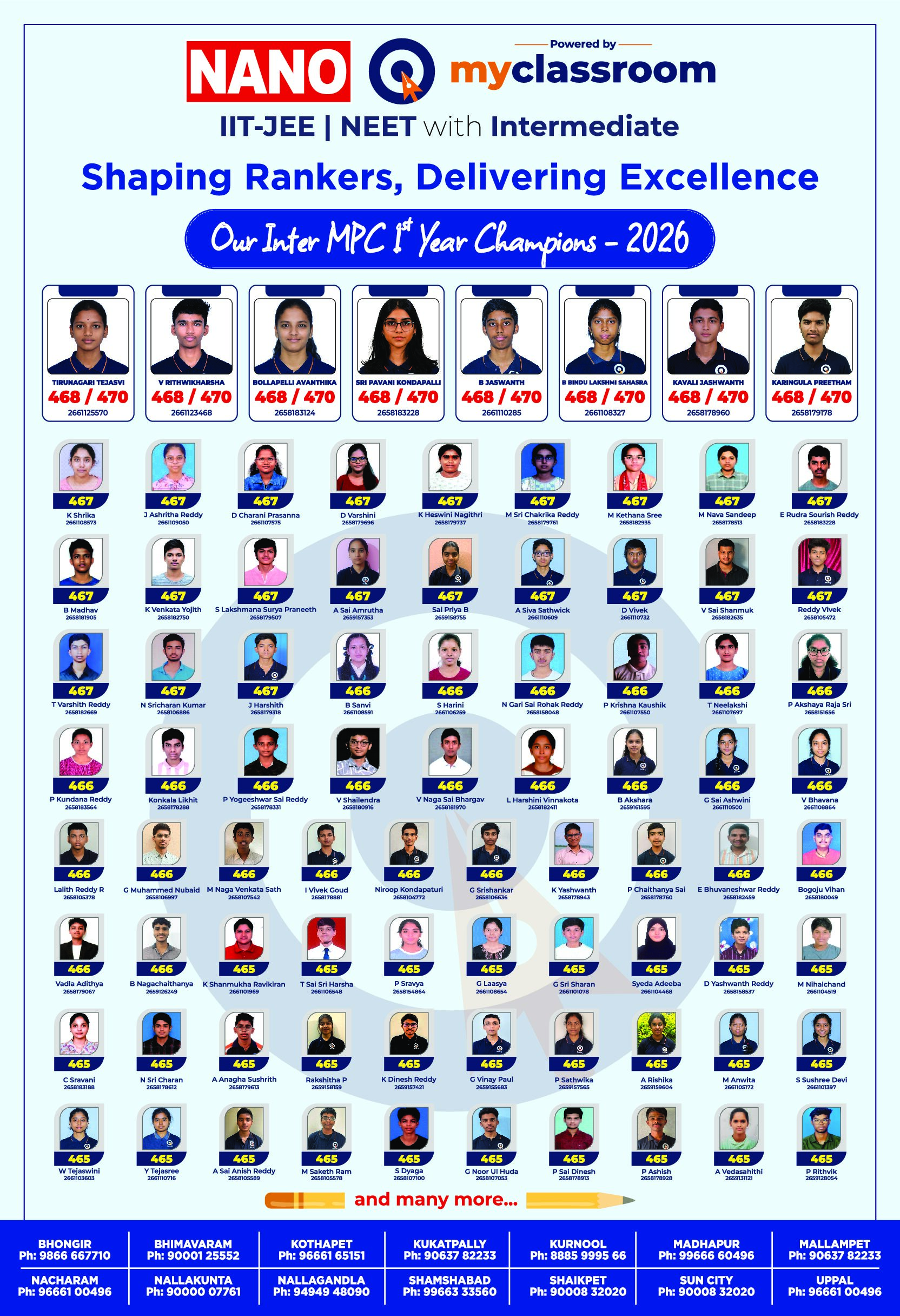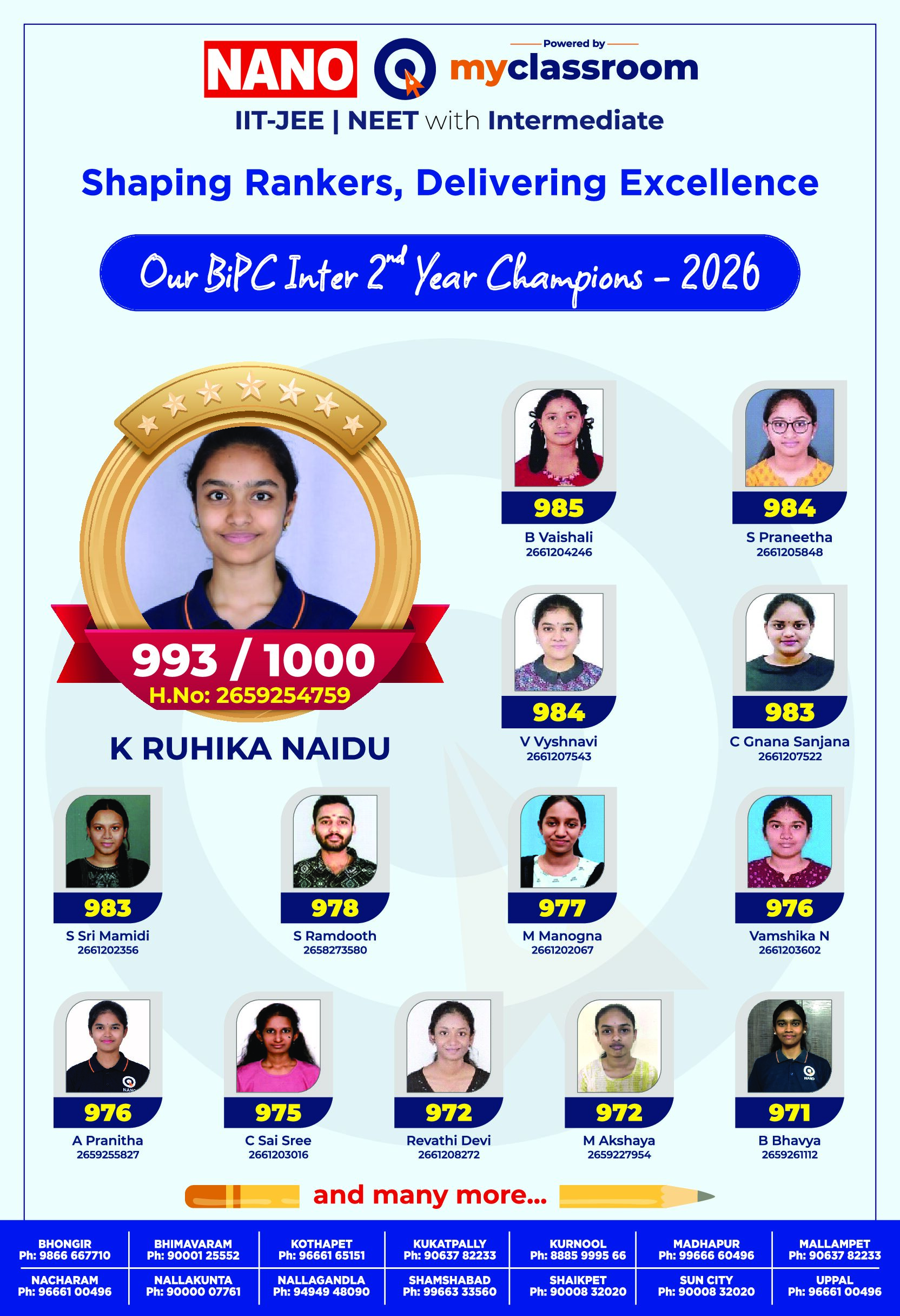 NANO Junior College & Special Coaching Centre is flourishing from both academic excellence as well as competitive ranks standpoint, and as such, the best college for IIT/NEET coaching in Hyderabad provides an idyllic studying opportunities to local students as well as students from all over Telangana state.